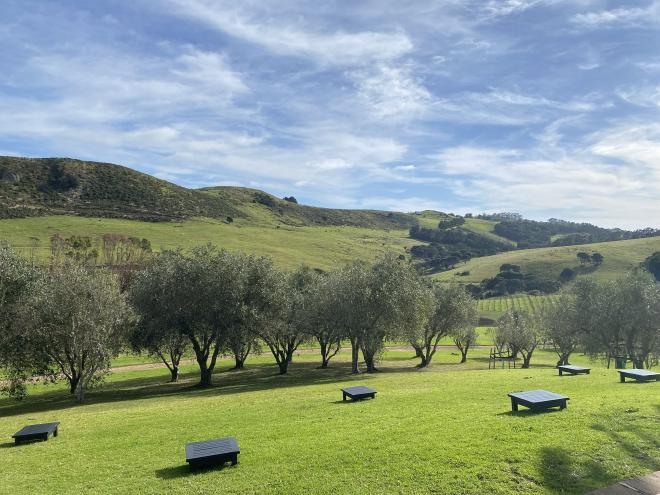 The next stop was just down the road, the Soho Family Vineyards Cellar Door. Less of a vineyard and more of an outdoor bar with a food van next to it. We enjoyed the wine more than at Stonyridge and the vibe, although less exclusive, was still relaxing.